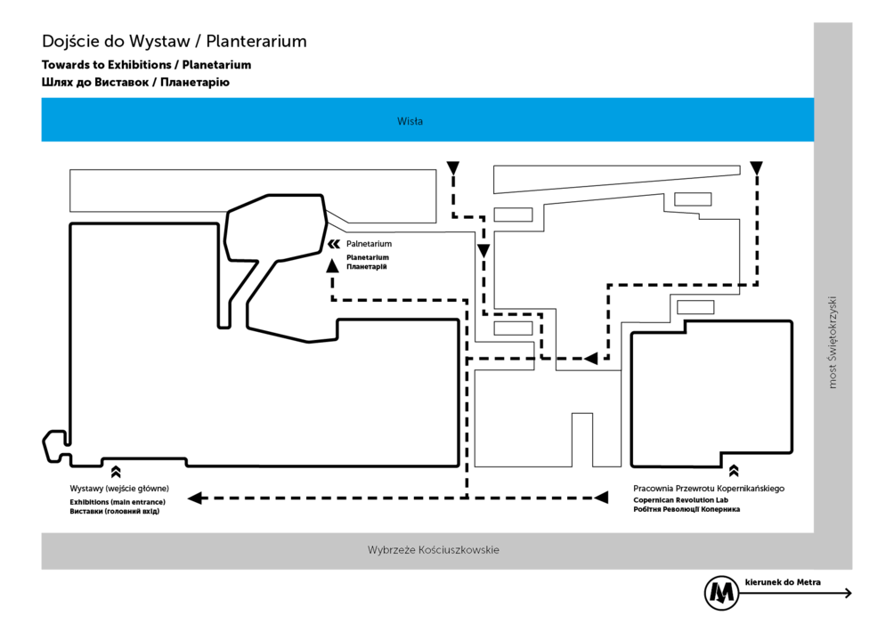 II linią metra — stacja Centrum Nauki Kopernik (prosimy kierować się do wyjścia Wybrzeże Kościuszkowskie)