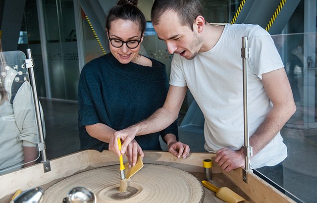 Takie właśnie eksponaty powstają w Koperniku. Dbamy o to, by precyzyjnie pokazywały autentyczne zjawiska i umożliwiały prowadzenie prawdziwych doświadczeń. Stosujemy praktyczne i przyjemne w odbiorze materiały – drewno, stal, szkło i pleksi. Obudowy są neutralne kolorystycznie, nie odciągają uwagi eksperymentujących od treści. Całość jest bezpieczna, intuicyjna w obsłudze i trwała, przetestowana przez zwiedzających Centrum Nauki Kopernik.